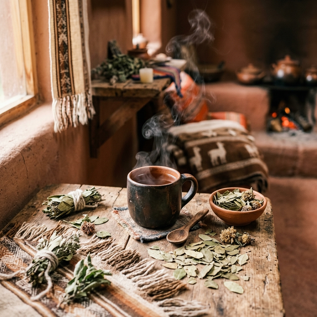El té de Coca es la herramienta ancestral por excelencia para la oxigenación, mientras que la Muña cuida y asienta el sistema digestivo. Ambas son pilares del calor que ofrece un auténtico Hampi Wasi.